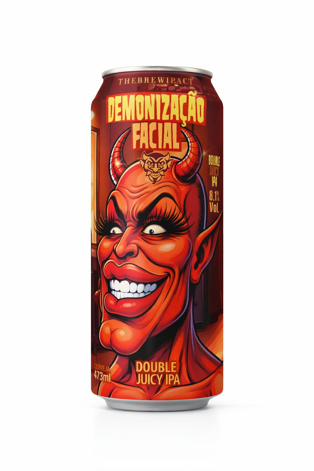 A Demonização Facial é uma Double Juicy IPA desenvolvida com foco em maior refrescância e final mais seco, mantendo intensidade aromática e alta drinkability. Com 8% ABV e 55 IBU, equilibra potência alcoólica e amargor moderado em um conjunto mais limpo e direto.